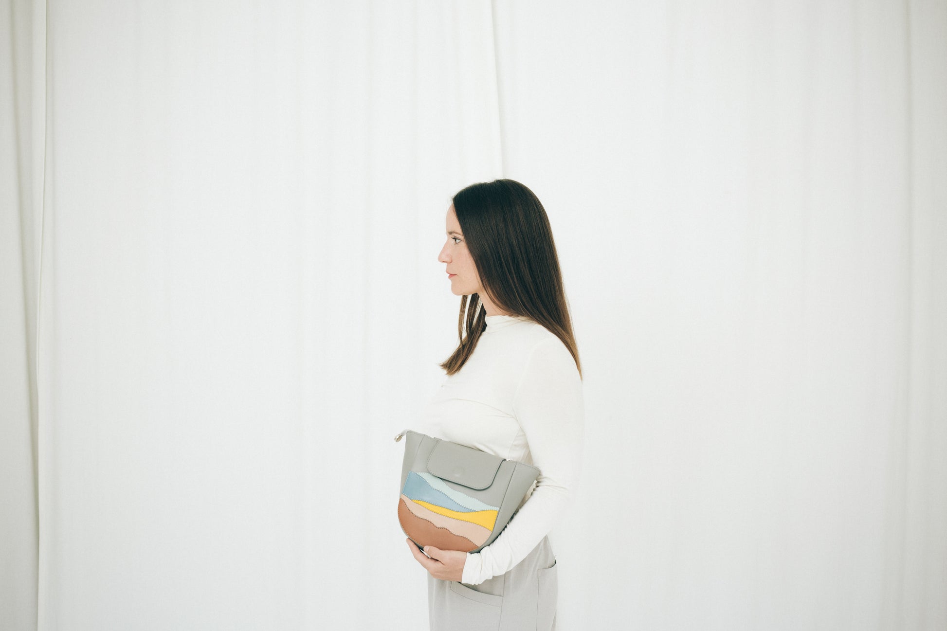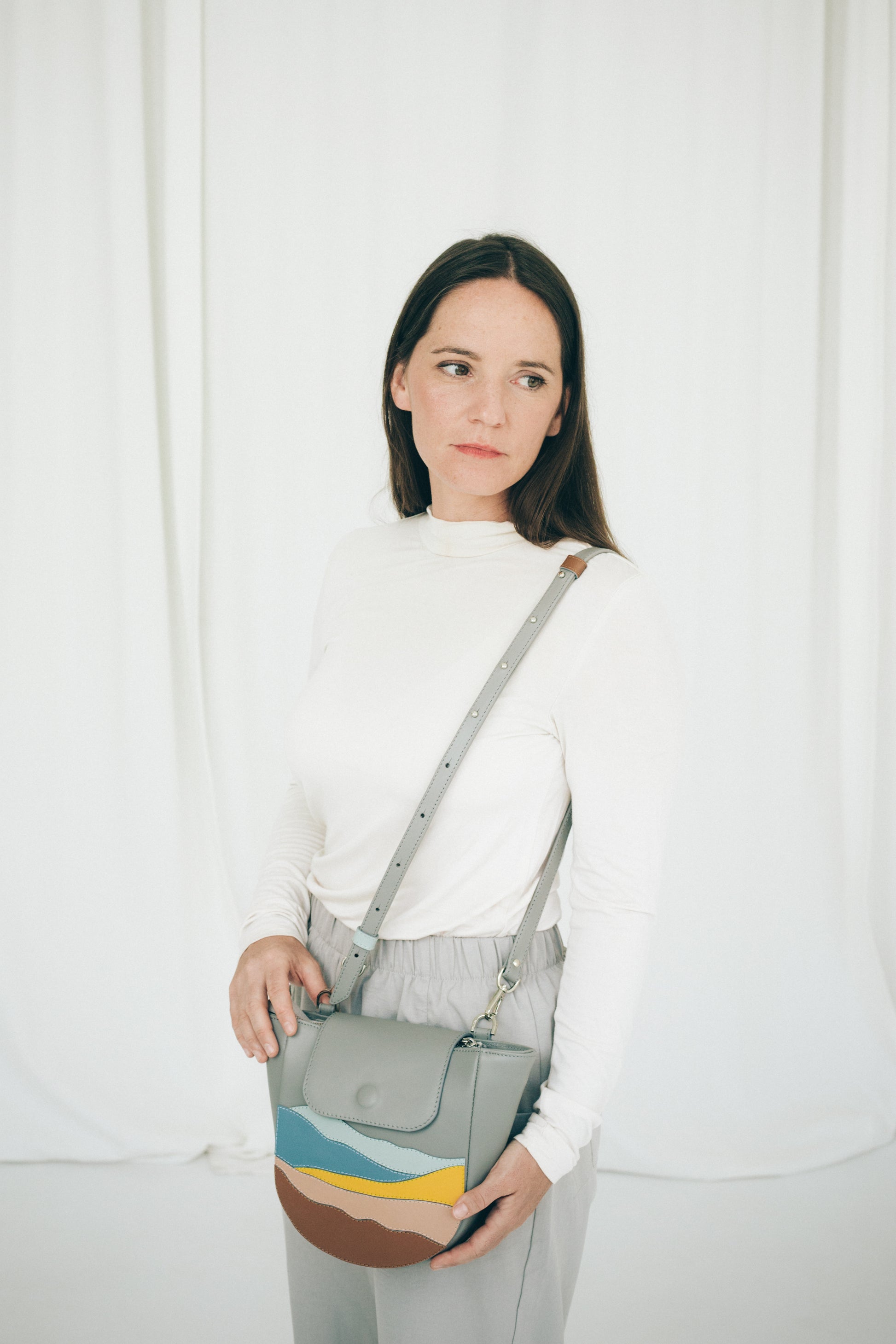 Kompakt, ívelt formájú táska, amely elegáns és praktikus választás a mindennapokra – de különleges alkalmakon is megállja a helyét.