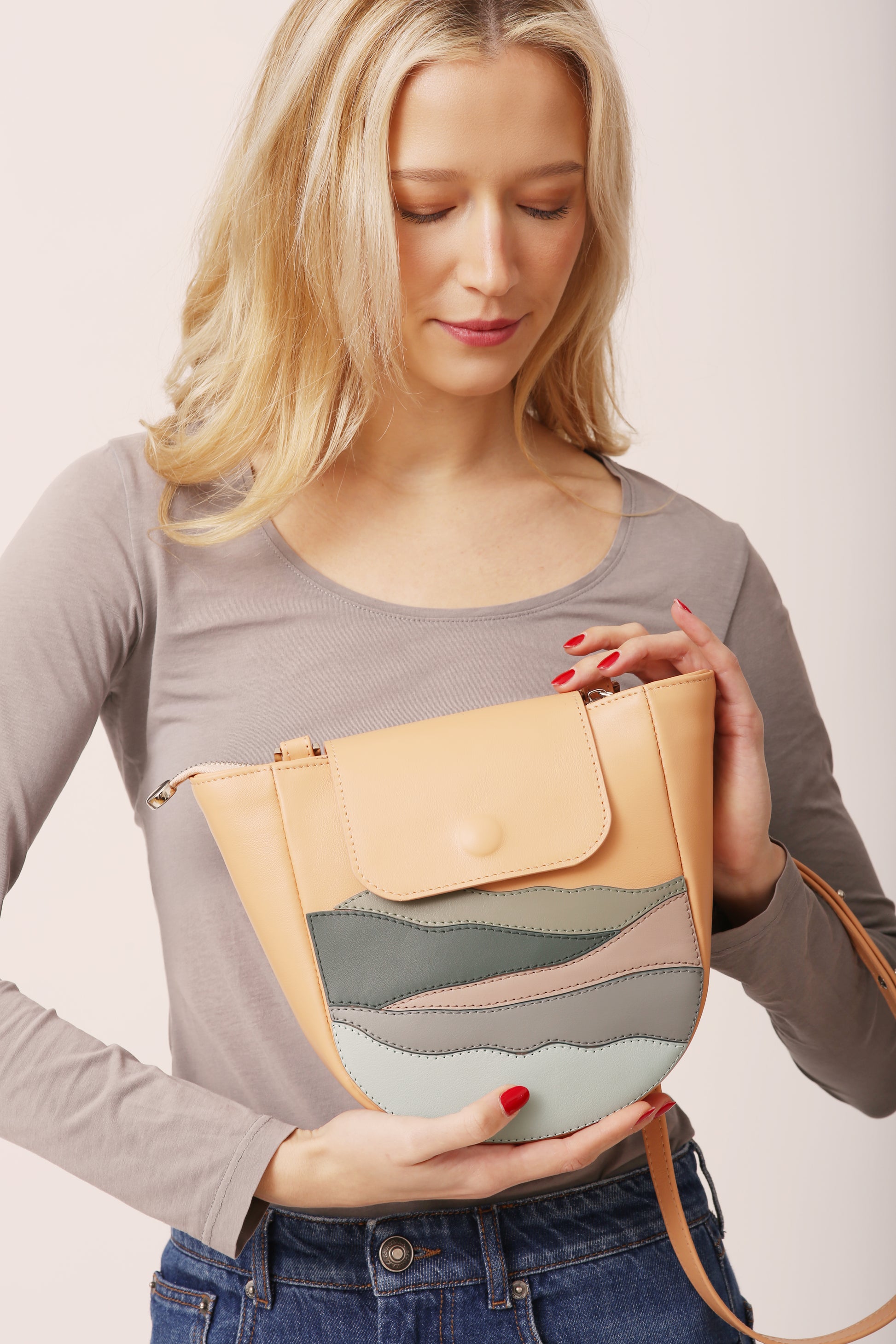 Kompakt, ívelt formájú táska, amely elegáns és praktikus választás a mindennapokra – de különleges alkalmakon is megállja a helyét.
